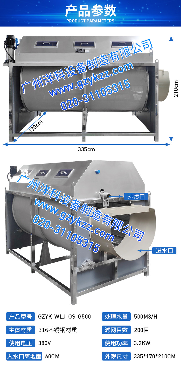 智能工厂化水产养殖滚筒过滤微滤机厂家直供316不锈钢材质500立方(淡水)