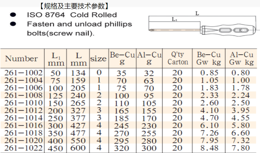 用途:用于紧固和拆卸十字槽螺钉