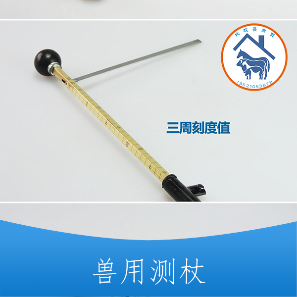 牛、马、羊 用 测杖,标尺为不锈 钢材质制成外杆为铁制成。主要用于牛、马、羊测量身体高 长 宽 。材质为不锈钢,外形有如手杖,用时可以将尺子拉 出,以供测量用不用时可以便于存放,便于携带
