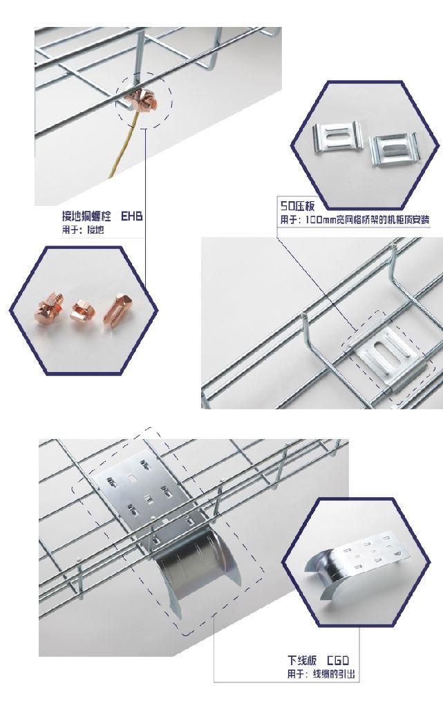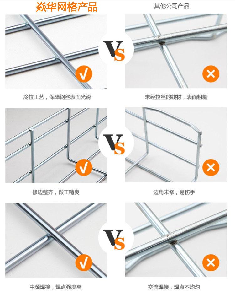 <8>开放式桥架网状的机构使它的散热更好,网格桥架有效的延长线缆的使用寿命.