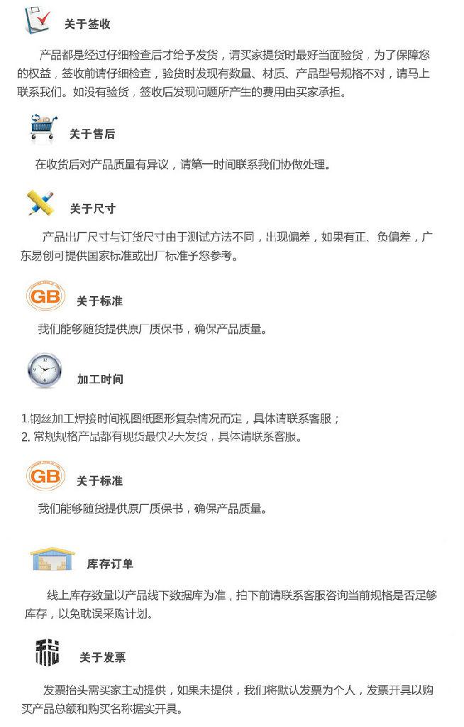 | 规格 | 例如CM100-100-3000-5-SS304表示不锈钢高100, 宽200,,长3米丝径5mm。 |