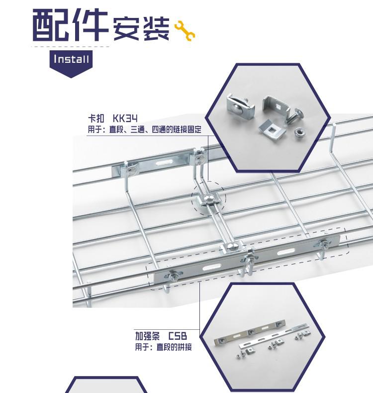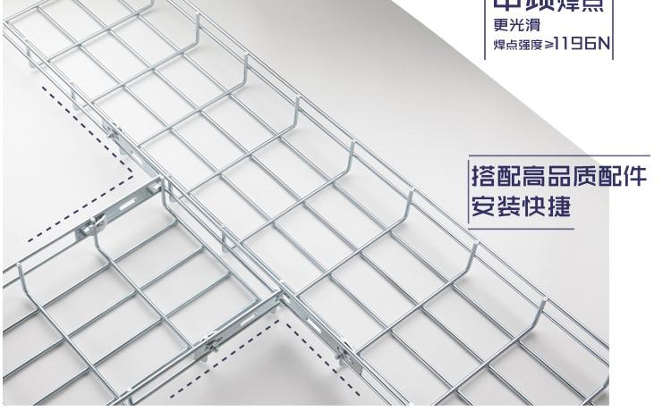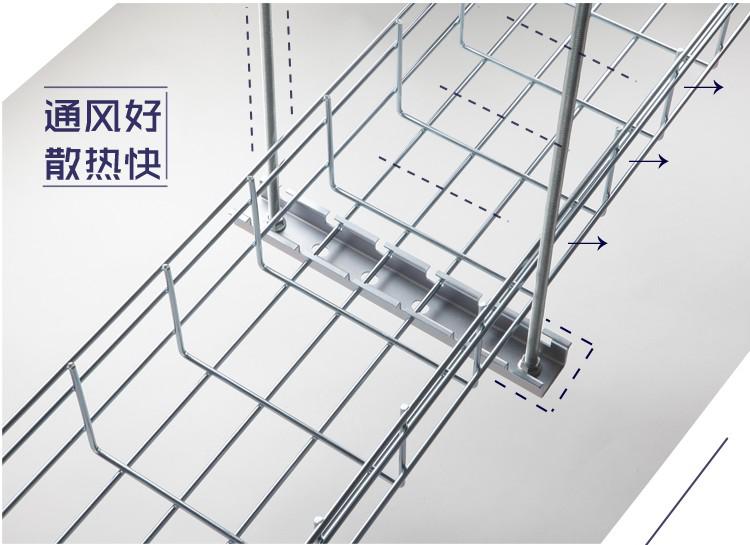 <8>开放式桥架网状的机构使它的散热更好,网格桥架有效的延长线缆的使用寿命.
