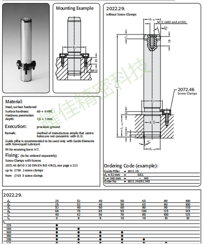 导柱热处理:HRC58-62;导柱表面粗糙度:Ra0.8、Ra1.6