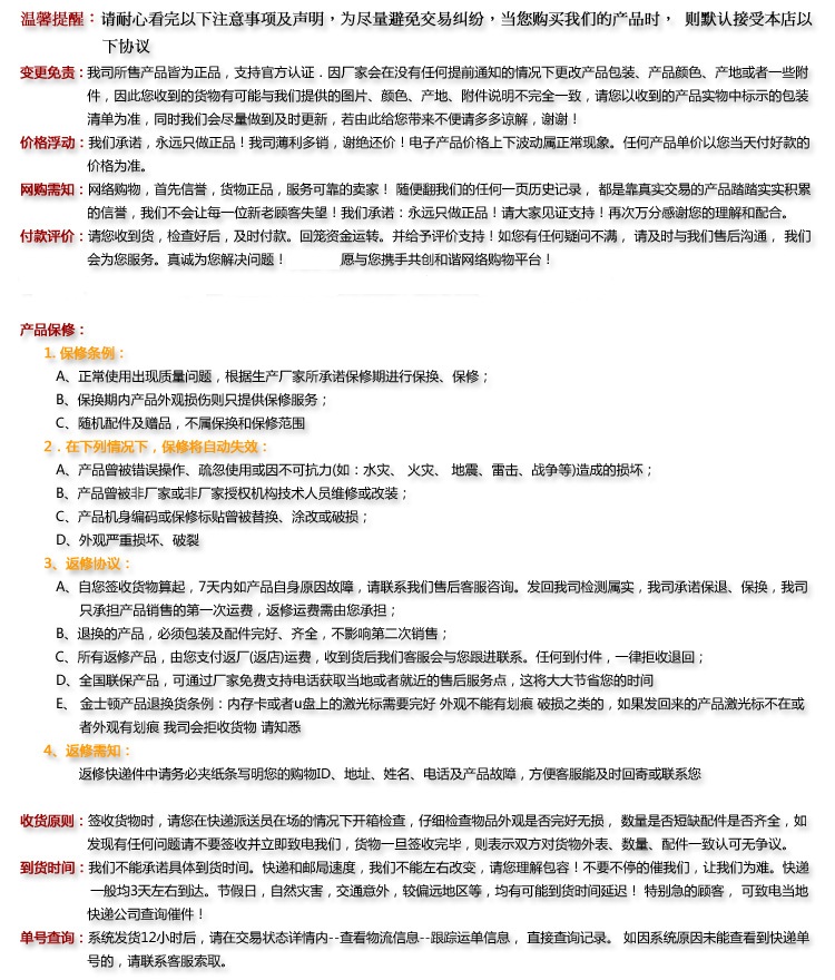 本店产品将采用如下几个快递公司或物流公司承运:速尔快递: 德邦货运能到达的地方发德邦自提;送货上门加运费55元;请您下订单前确定您的收货地址,可登陆物流或快递公司网站查询当地是否有服务网点,有些地方 如无服务网点,可发货运专线,具体情况可以跟店主联系.如有指定物流要求,需与店主特别说明.