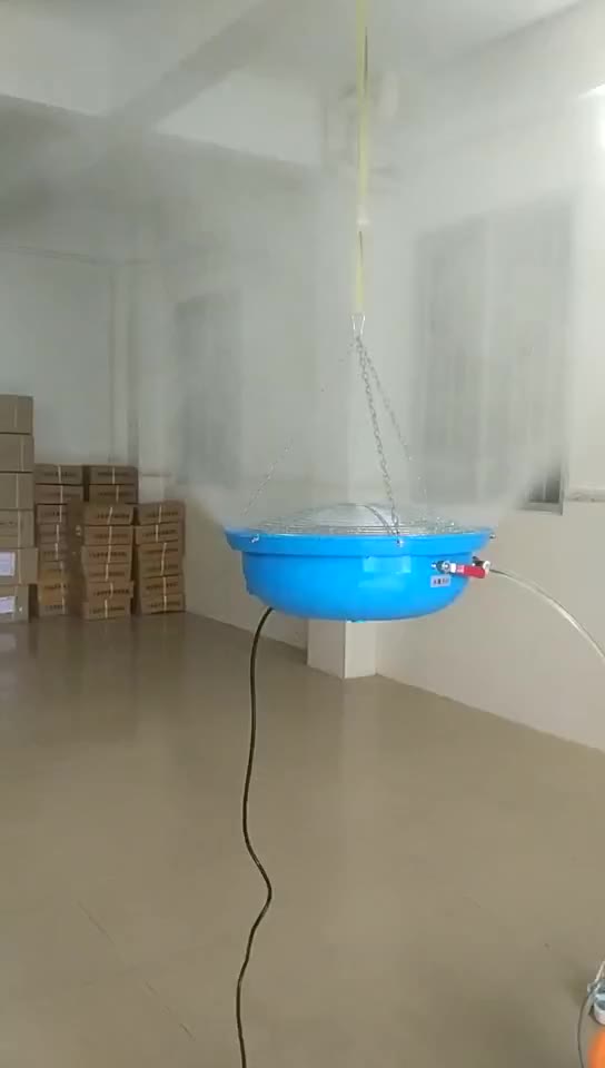 随着科技的发展,公司研发了一种全新的喷雾降温装置---冰雾盘,用户可以根据场地情况,悬挂于空中,其参数描述如下:功率≤90W,喷出雾滴直径10um,有效范围100㎡,耗水量15L/H,依据笔者的推算,1000㎡的建筑面积投资成本在5000元人民币左右,运行成本在1.5元/H,远远低于以前用户采用的所有降温措施。接水接电即可使用,后期无维护,不会堵塞使用省心。