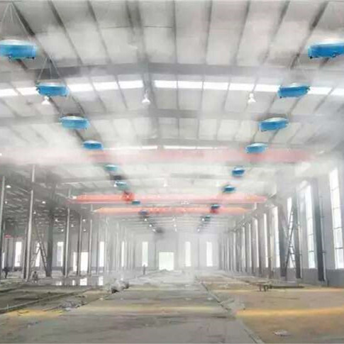4.强制物理降温:在车间内部或外部加装喷雾系统,通过大量微小水滴的蒸发带走空气热量或阻断热量传导从而降低温度。优点是对比1、2、3项措施效果显著,缺点是运行维护麻烦,投资成本高。