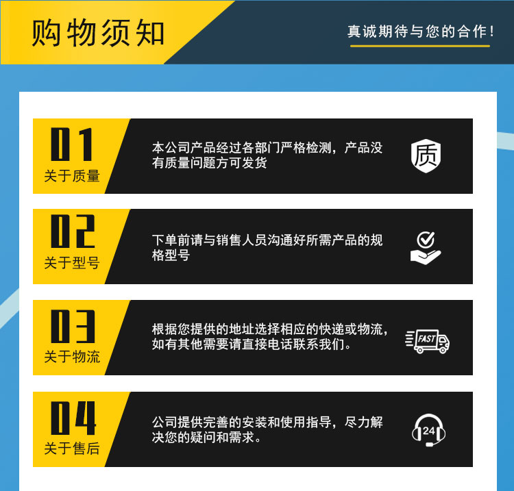 我们一直都站在客户的立场上,力求产品高质量,低耗率,以质量求生存,以服务求发展,公司将以饱满的热情和服务,答谢新老客商多年来的支持与厚爱。