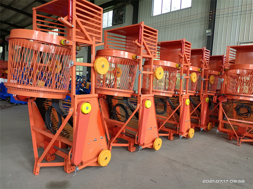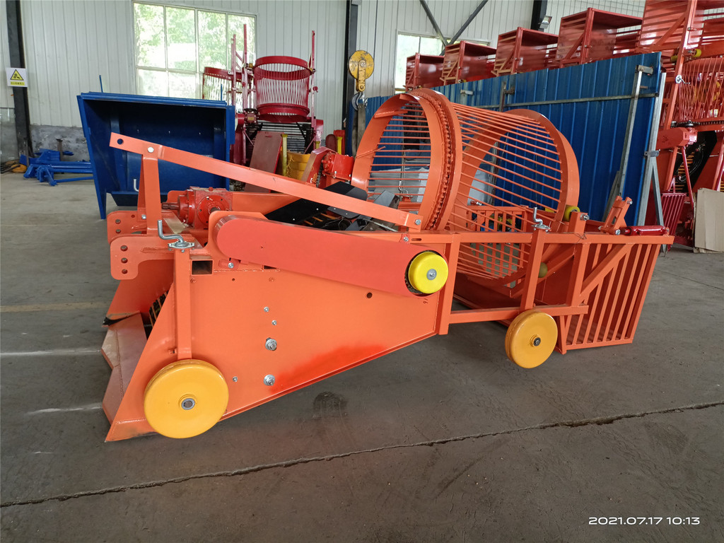 5、在行走时,拖拉机的行走速度可在慢2档,后输出速度在慢速,在坚实度较大的土地上作业时应选用低速档位的耕作速度,作业时,要随时检查作业质量,根据作物生长情况和作业质量随时调整行走速度与升运链的提升速度,以确保收货质量和作业效率。