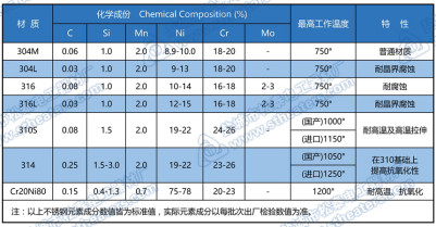 常见材质:SUS314、SUS310s、Cr20Ni80、inconel601等