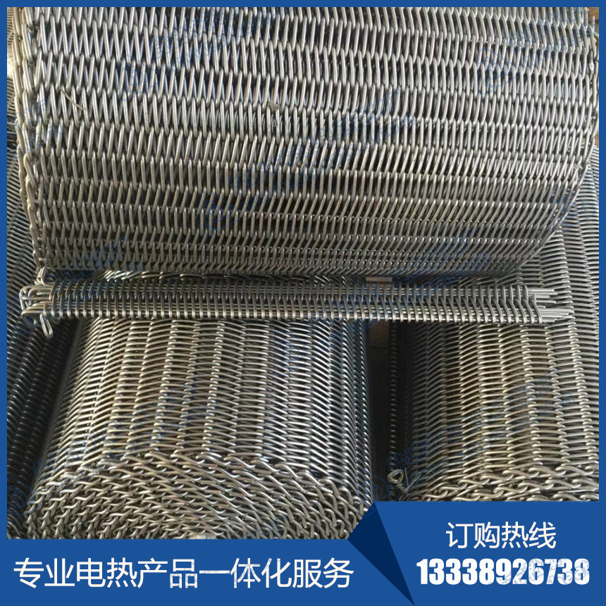 输送网带是一种摩擦驱动以连续方式运输物料的输送装置,可以将物料从供料点到卸料点间形成一种输送流程。工业耐高温金属网带则是指选用耐高温金属材料(常见为314、310S、Cr20Ni80等耐高温合金材质)编织而成的不锈钢网带,常用于各种工业高温窑炉设备。