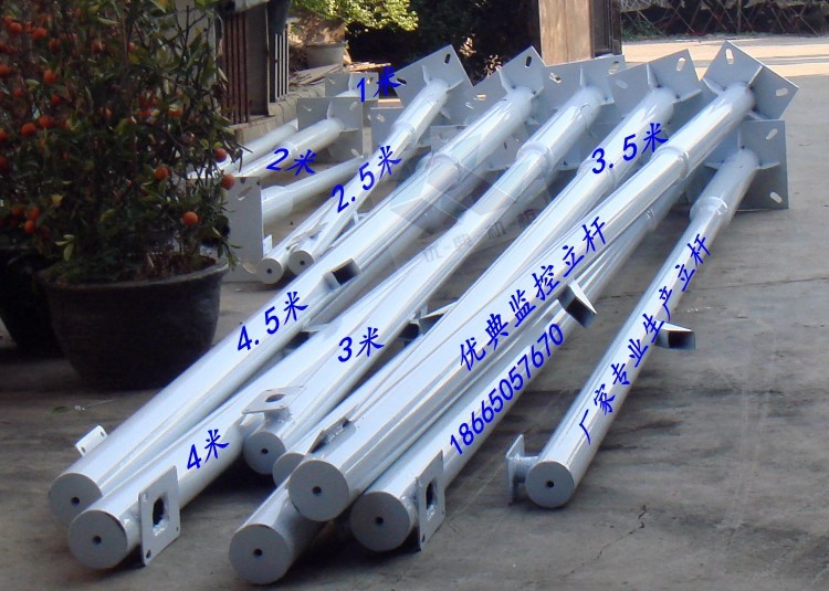 监控立杆也叫监控杆,分为八角监控杆,圆管监控杆,同径监控杆,锥形监控杆,高度一般为3-8米,主要用于道路,海岸,军营,