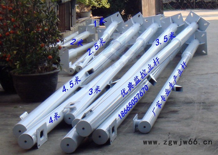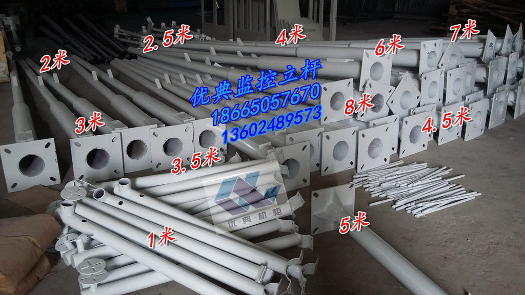 监控立杆也叫监控杆,分为八角监控杆,圆管监控杆,同径监控杆,锥形监控杆,高度一般为3-8米,主要用于道路,海岸,军营,