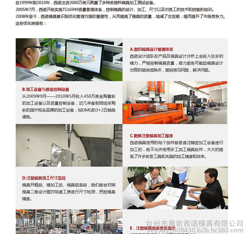 西诺是一家高科技注塑模具制造商,有着独特的经营管理理念及发展方向,致力成为注塑模具以及塑胶成型技术创新企业。