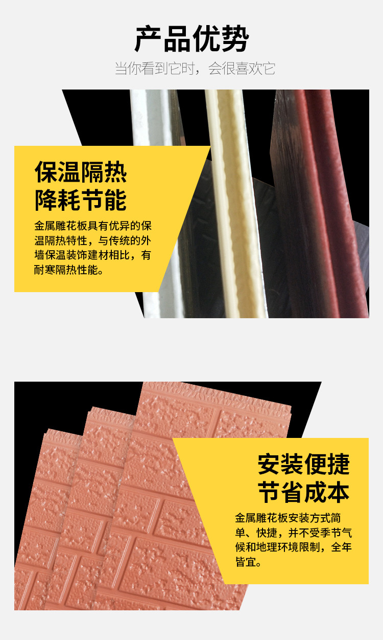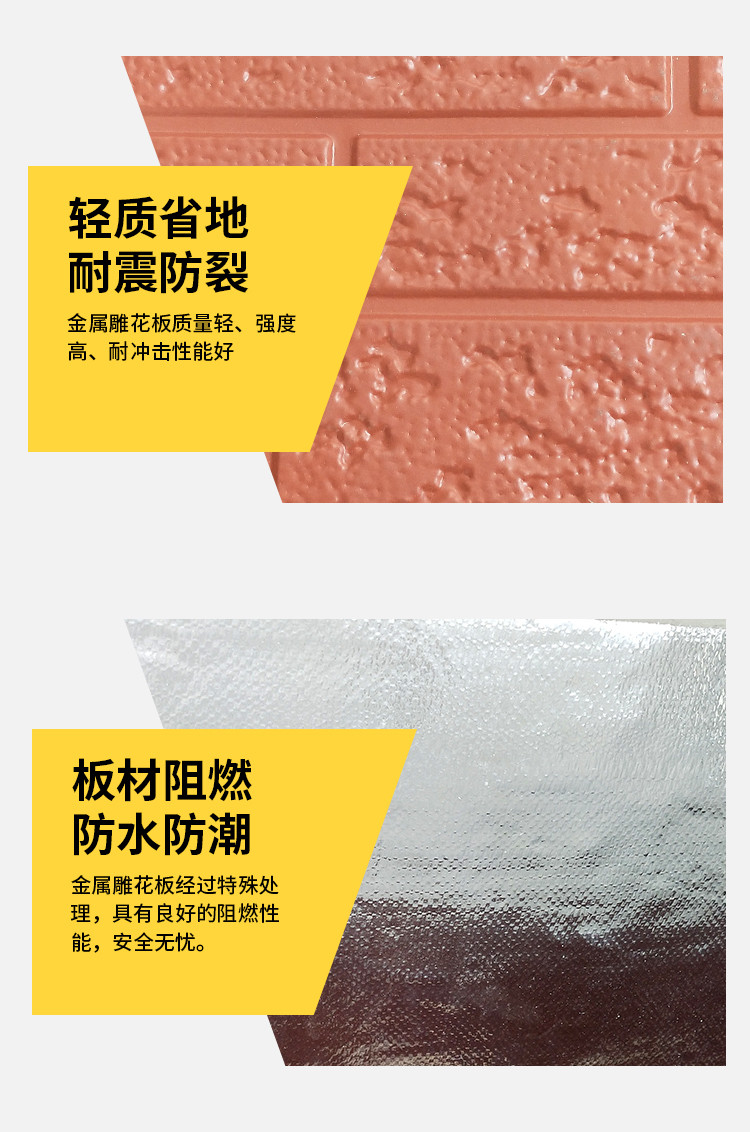 叶木阁 金属雕花板 金属压花纹理外墙板 仿古砖石头纹 保温隔热外墙板