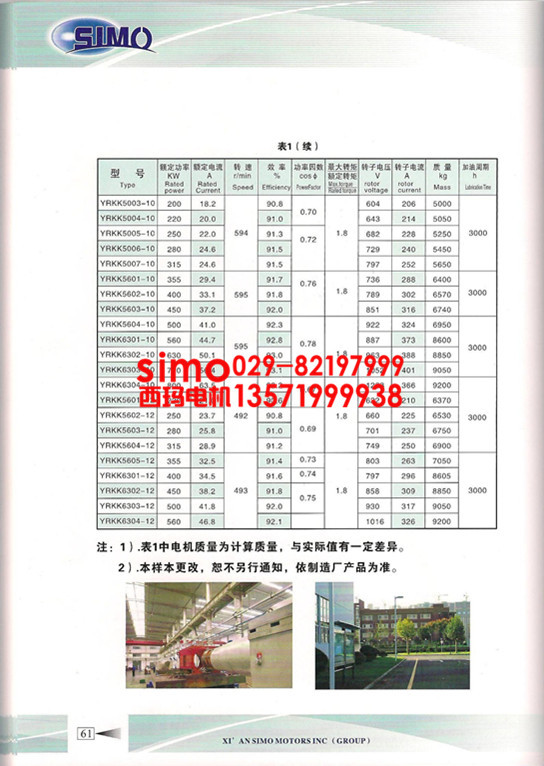 三、YRKK5004-10 315KW 10KV西安西玛牌三相异步电动机用途