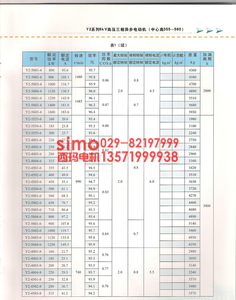 三、西安西玛电机Y2系列 6KV高压电动机型号含义
