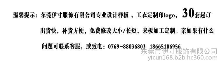 东莞市伊寸服饰有限公司专业设计样板,工衣定制印logo,30套起订,出货快,补货方便,免费修改大小/长短,