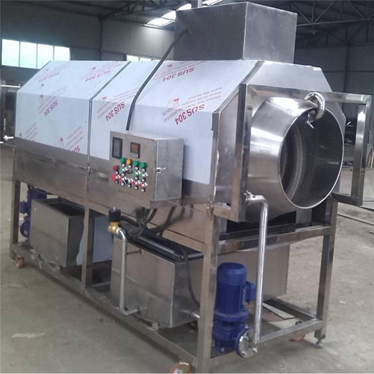 滚筒式枸杞清洗机整机采用SUS304不锈钢制作,滚筒内部用毛刷做成螺旋状,在清洗的过程中通过筒体的不断旋转,枸杞也随着不断转动,与毛辊不断接触对枸杞表面的油污进行清洗,内部还加入了喷淋不断冲洗物料。将物料直接倒入滚筒内,采用循环水泵,变频调速,清洗干净后直接进入风干线,风干完毕后直接装箱即可。该设备具有自动化程度高,操作及维护方便等特点。