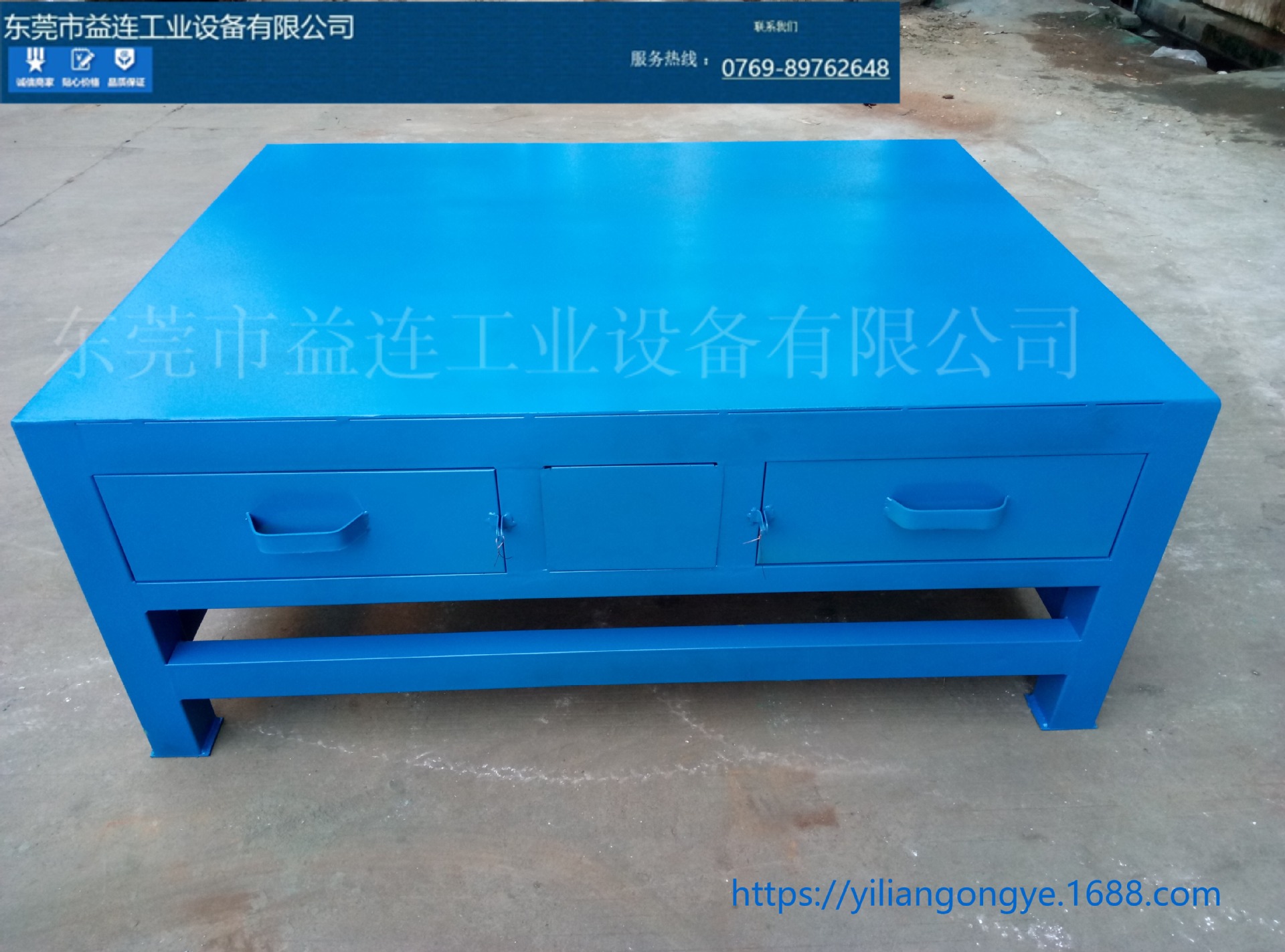 支架为40*80扁通,台面为A3钢板10mm厚,4抽,下层铺1.0钢板方便放工具,承重动态1吨,静态2吨