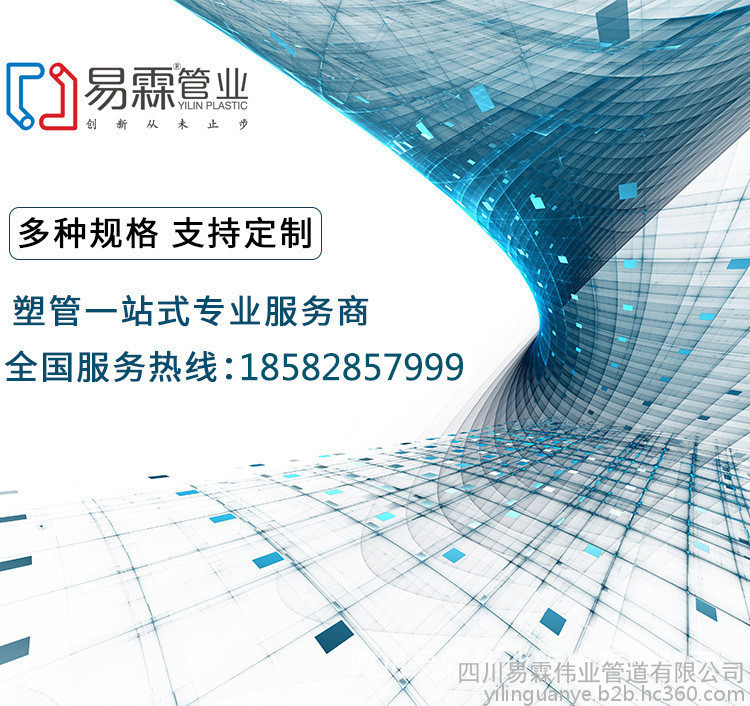 四川易霖伟业管道有限公司是一家集生产、研发、销售与安装为一体的新型管道技术企业。公司位于四川省彭州市致和镇复兴工业园。公司自成立以来,是一家专业生产HDPE塑钢缠绕管、中空壁塑钢缠绕排水管、内肋增强聚乙烯(PE)螺旋波纹管、HDPE增强缠绕B型管(克拉管)、HDPE钢带增强聚乙烯螺旋波纹管、钢丝网骨架复合管、PE给水管、MPP电力电缆保护管、玻璃钢电力护套管、玻璃钢夹砂给排水管、HDPE双平壁缠绕管、PVC电力电缆护套管、HDPE双壁波纹管、FRPP双壁加管波纹管、PVC-U双壁波纹管、塑料检查井的生产厂家。公司专注于新技术产品的开发、生产、销售;公司高度重视新产品的开发与应用,目前拥有国内水平生产线30多条(套),成立了自己的企业研发中心,拥有研发人员;产品适用于城乡市政、厂矿企业、化工行业的给排水、电力电缆、燃气等行业,为城乡环境保护、节能减排以及新农村建设提供了全方位的产品。