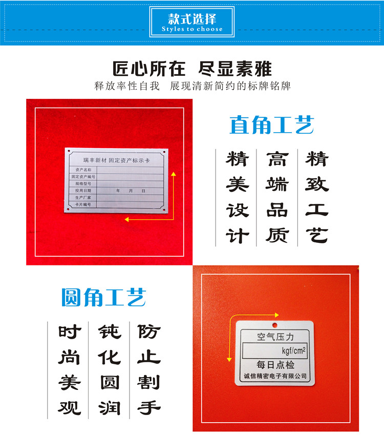 【承接产品】:一禾标牌、金属铭牌、铝牌、铝标牌、铜标牌、铜牌、不锈钢标牌、高光标牌、腐蚀标牌、丝印标牌、蚀刻铭牌、印刷铭牌、pvc标牌、滴胶标牌、一禾家具标牌、服装标牌、电缆标牌、标牌logo、产品标牌、汽车标牌、冲压标牌、拉丝标牌、一禾五金标牌、箱包标牌、电力标牌、一禾电机标牌、电器标牌、标牌制作厂加工铝牌,一禾铝铭牌,铝标牌等