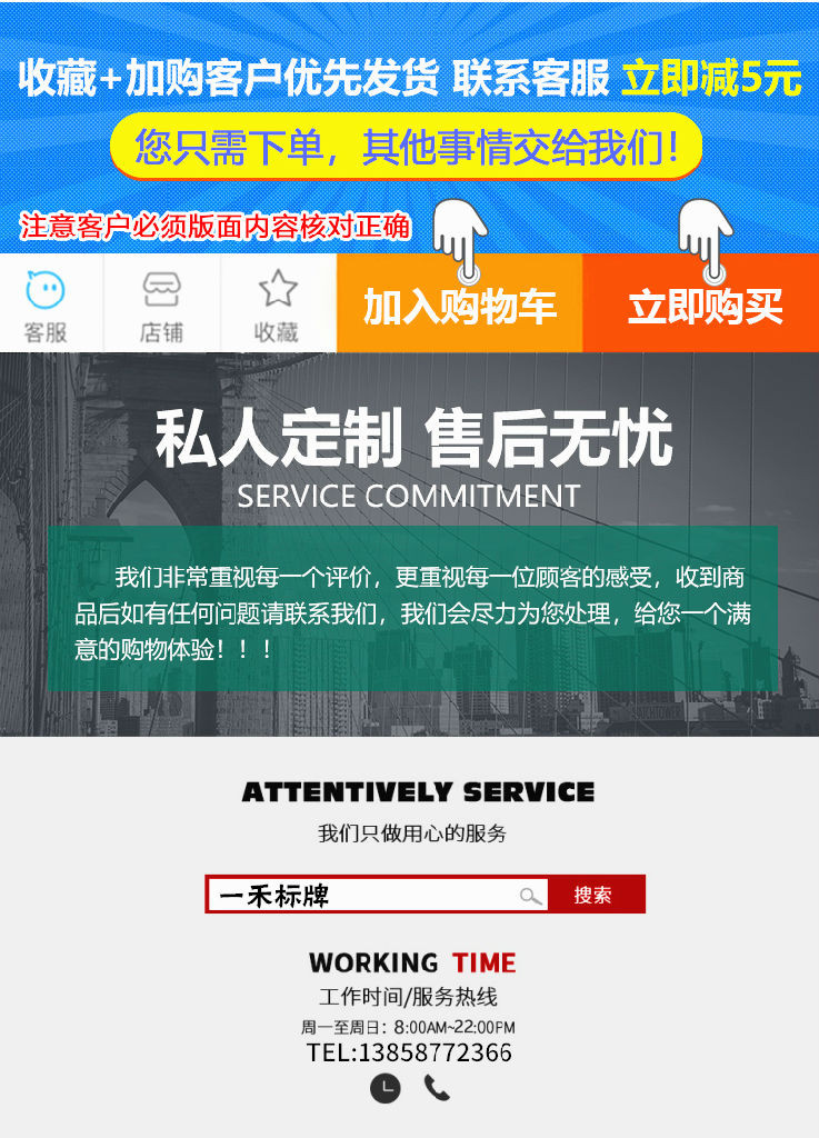 本产品属定制类产品,图案、价/格只供买家参考,因受规格、数量等因素影响价/格变动较大,以上价/格为象征性价/格,具体价/格请买家在拍前和我们联系,我们可以按您提供的具体内容设计、加工制作。具体单价根据尺寸、数量、材料及其厚度、工艺复杂程度议定。