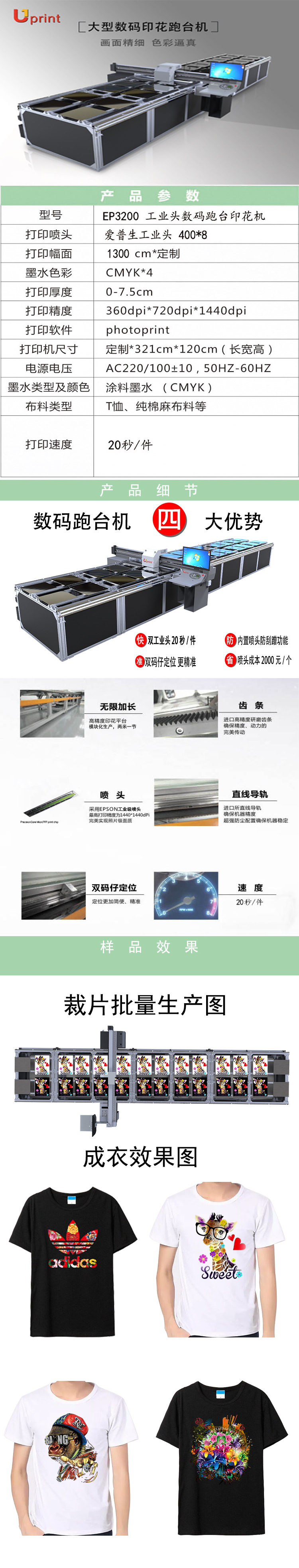 东莞市兴派数码数码科技有限公司是一家国内外**的数码印花方案供应商,公司致力于数码印花导带机跑台机,直喷机的研发生产和服务。兴派数码是全世界范围内**家发布用于片装打印的数码导带印花打印机,目前公司优势产品主要是宽幅数码导带印花机及其配套方案,如涂料直喷方案、活性直喷方案、分散染料直喷方案,包括相关设备,墨水等耗材。当下流行的印花T恤图案。大体可以分三种工艺来源**种属于比较传统的,技术也非常成熟的丝网印刷。丝网印花。我们从印前开始分析。丝印,是把设计图按颜色拆分出来,通过制版这道工序,把单独拆分出来的颜色分别印刷上去。所以,大多数是一个颜色需要开一个丝印网版。这是比较通用的。也叫专色丝印板。制版需要开菲林片。一般是用45线,网纱目数用到100--135目。另外有一种CMYK四色印花**是把整个图案拆分成四原色,通过叠色原理,菲林片55线到65线。网纱目数300目左右。针对不同的图案,采用不同的分色方法去实现丝网印花。精细度越高,对于图案的还原度越高。颜色分的越细致。还原度也越高。这是印前准备。所以开板越多,成本越高。颜色越多,成本越高。印制的过程中。印刷会根据不同的底衫颜色,不同的印花图案颜色做出印花材料的选择。可以分几大类**是水浆印花。要求你所需要印刷的颜色,必须是可以遮盖住T恤底衫的颜色的。这样才能够实现。可以拿水彩画来参考。在白纸上面 ,是可以画任何颜色,但是在黑色纸上面,水彩笔**画布出颜色了。无法显现。同理,在浅色衣服上面画深的颜色,也可以实现,但是会涉及到一个叠色,撞色的变化过程,比如在黄色衣服上面画蓝色**会变成绿色。 水浆印花的好处**是,手感柔软,透气性非常好。颜料通过固浆(树脂成分)粘附到棉纤维上面,布的纹路是通透的。但是水浆印花的不足之处**是,只能在浅色衣服上。穿的时间久了,图案的颜色鲜艳度会有所下降。 如果遇到深色面料怎么办呢?那么只能覆盖住布底的颜色,需要一种有填充能力的涂胶了。第二,胶浆印花。胶浆印花可以比喻成油画。印刷的涂料是胶浆。这是有覆盖能力的。因为胶浆这种料,是用钛白粉结合聚氨酯做出来的**好像油画。可以在任何画布上,任何地方上去涂鸦。所以胶浆印花可以适应所有T恤的面料。不管底衫的颜色是什么,对于胶浆印花丝毫没有影响。能够还原整个图案的颜色。既然胶浆是有填充质感的,所以**牵涉到了透气性了。因为胶浆印出来会有一层胶质感。所以不适合大面积整块的印花。 如果想有水浆的透气性,但是又需要在深色面料上做印花怎么办?第三种,拔印。棉布的颜色,是染上去的,那拔印的原理**是破坏掉布本身的染色,然后把自己附带的颜色再染上去。拔印印花做出来之后,不会有胶浆的胶质感,类似水浆一样的,柔软,有透气性,也能在深色面料上做。不足之处**是成本比较高,损耗也比较大。丝网印花,还能做其他很多特殊的印花工艺,结合图案设计,可以做出很多好玩的**。比如夜光,反光,荧光,珠光,厚板,绒面发泡,植绒,光变色,温度变色,各种镭射,七彩反光等等等等。丝网印刷还有其他的小品类**先不提。揭晓第二种工艺。烫印。 烫印**是我们说的转移印花,转移印花分热升华,烫画。热升华是把图案镜像打印到热升华纸上面,然后通过高温转移到布料上面。热升华只能针对全涤的面料,或者TC面料(TC面料是只含涤超过65%的棉布)。打印**是不需要开板这一块了。 烫画,高端一点的是平面烫画,这个需要大批量才能做,是把图案镜像开板,印到离型膜上之后,再印一层热熔胶,然后把图案烫到衣服上面,我们衣服上的尺码唛,大多数都是用这个来做的。跟丝印的原理基本一样。 中端一点的,PU烫画,主流是采用日本的罗兰机喷刻一体机,直接把图案打印到PU膜上,用的是弱溶性墨水。图案打印好之后,再把图案刻下来。这个可以小批量定制。图案也可以镂空。第三种**是**低端的,用的爱普生打印机配合转印纸,分深色转印纸,浅色转印纸,这个在家里都能做,做出来的烫画,一大块一大块的Bia在身上。非常难受**的好处**是在家都可以做。非常便宜。