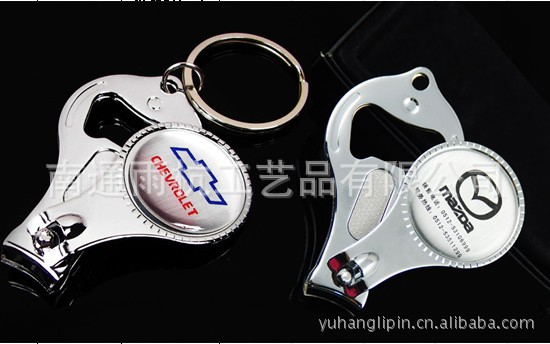 6功能指甲钳:指甲钳锉 啤酒开瓶器LOGO位 小镜子大 钥匙圈 市场价:6元/套