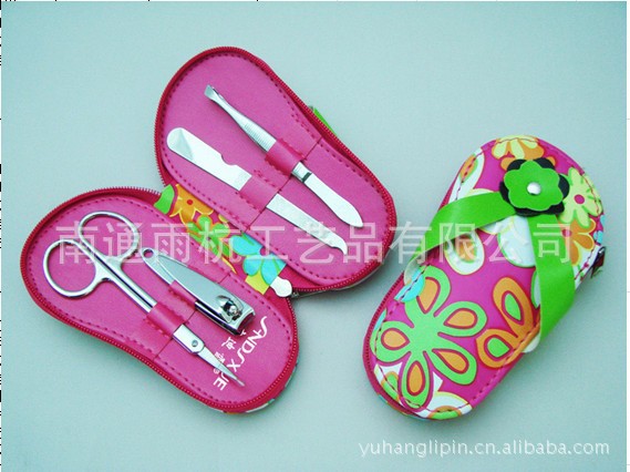 拖鞋形促销四件套:指甲钳 指甲锉 眉刀 眉夹 市场价:12元/套