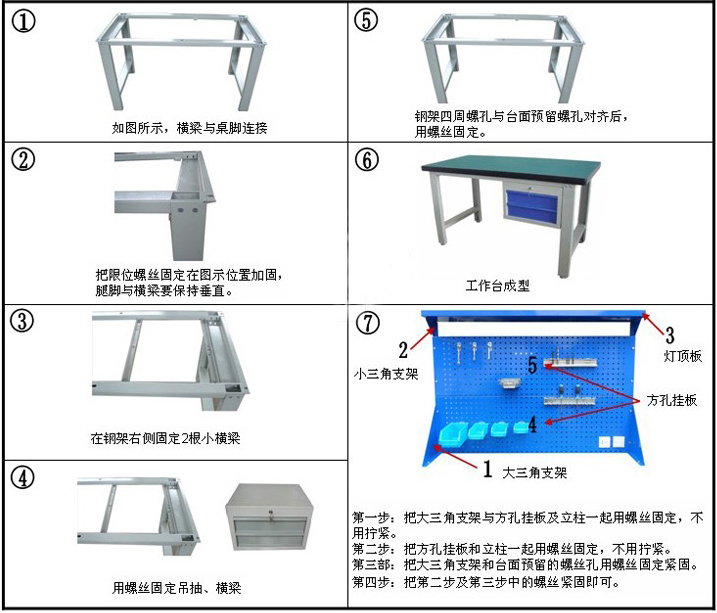工作台采用组装式结构、便于运输台 面:50mm绿色复合桌面承 重:1000 KG颜色:灰白色
