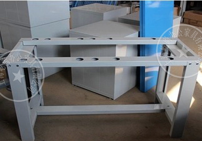 桌腿及横梁采用**冷轧钢板 底部带有可调节金属调整脚、可用于水平调节