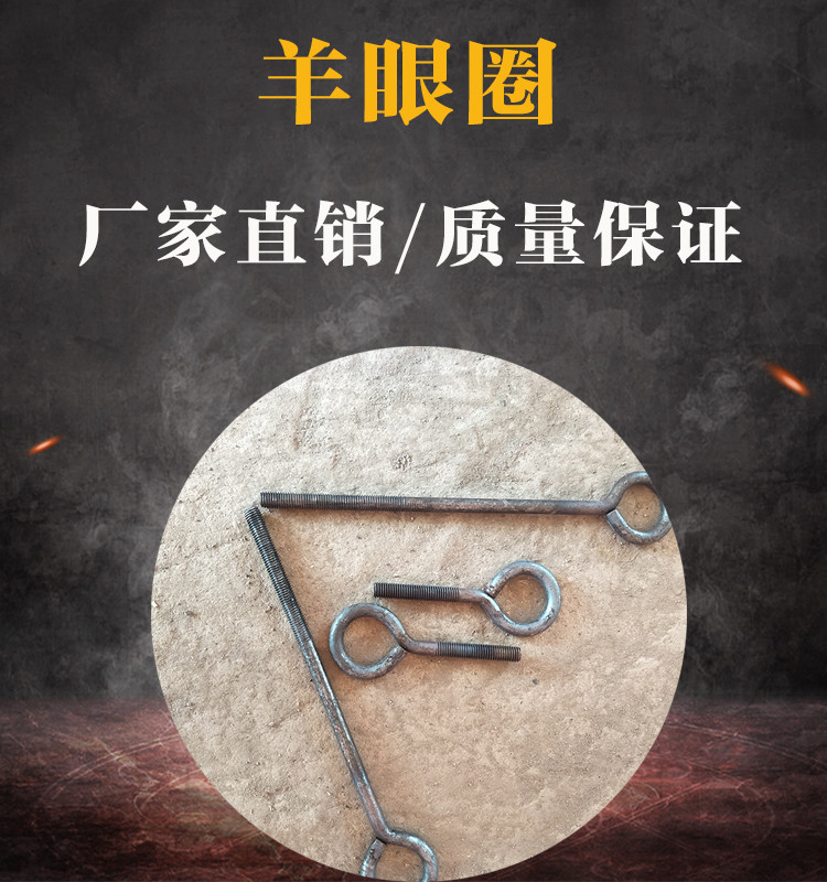 羊眼螺栓,又称羊眼,羊眼圈、羊眼钉、羊眼螺丝、等等,是广泛用于饰品吊挂的配件,也是建筑装饰常用五金配件之一。