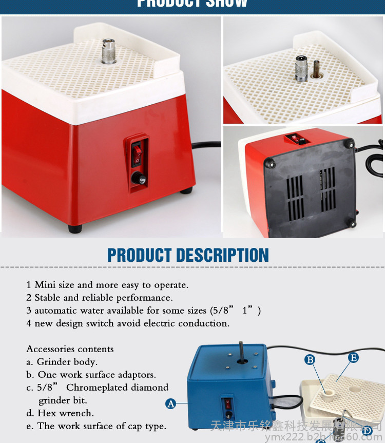 曼德美标插头MD901-US110v小型迷你家用电动工具磨边机研磨玻璃红色电动磨台