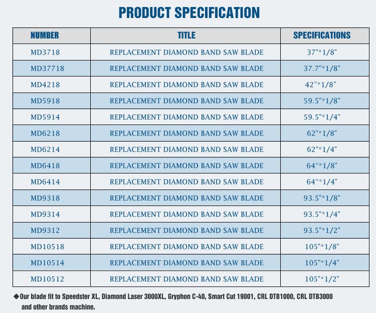 | 锯路宽 | 无锯齿无接口金刚石带锯条 |