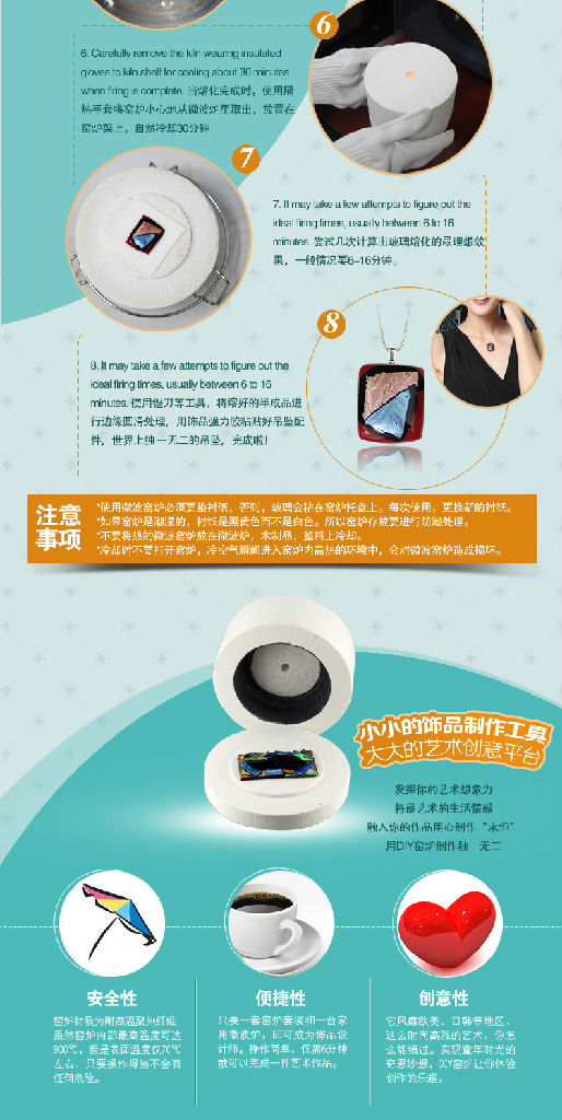 曼德1707001B热熔彩色玻璃制作diy饰品 高温微波小窑炉套装