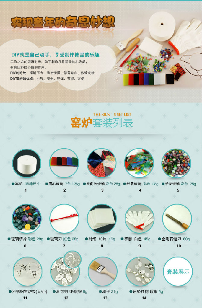 曼德1707001B热熔彩色玻璃制作diy饰品 高温微波小窑炉套装