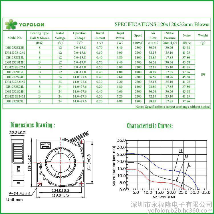 深圳永福隆电子风扇产品尺寸系列齐全:从20x20x06mm到254x254x89mm,并且提供标准的滚珠轴承和含油轴承以及液压结构。直流风扇电压范围5-48VDC,交流电压范围:110V-380V。为了更好的服务于全球客户需求,我们的产品通过了一系列的认证如:UL、CUL、TUV、CE以及ROHS,REACH。我们有各种专业的测试和测量仪器,客户也可对风扇产品提出不同的外观,风量等设计要求。同