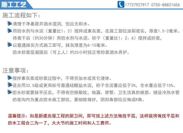 1、一般堵漏:将渗漏处凿成V型槽或孔洞至砼构层,采用堵漏王掺水配制成团块状,约一分钟左右,待其发热时,迅速嵌填至渗水V型槽或孔洞中,并压实抹平。