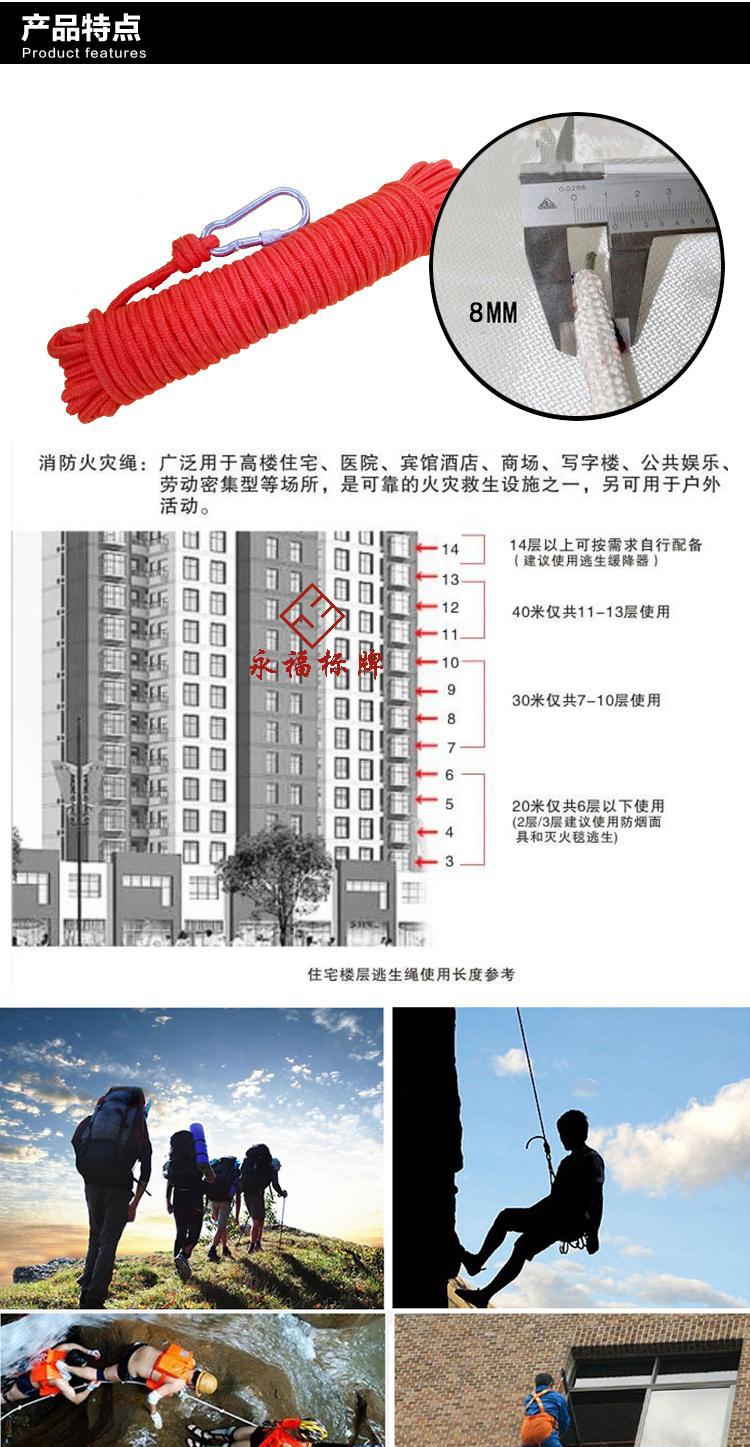 安全绳家庭防火灾高楼应急逃生绳户外逃生自救绳消防绳8mm粗
