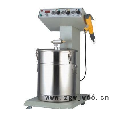全不锈钢的供粉桶,活盖、底层流化床,坚固、灵便的推车可迅速改变喷涂位置。