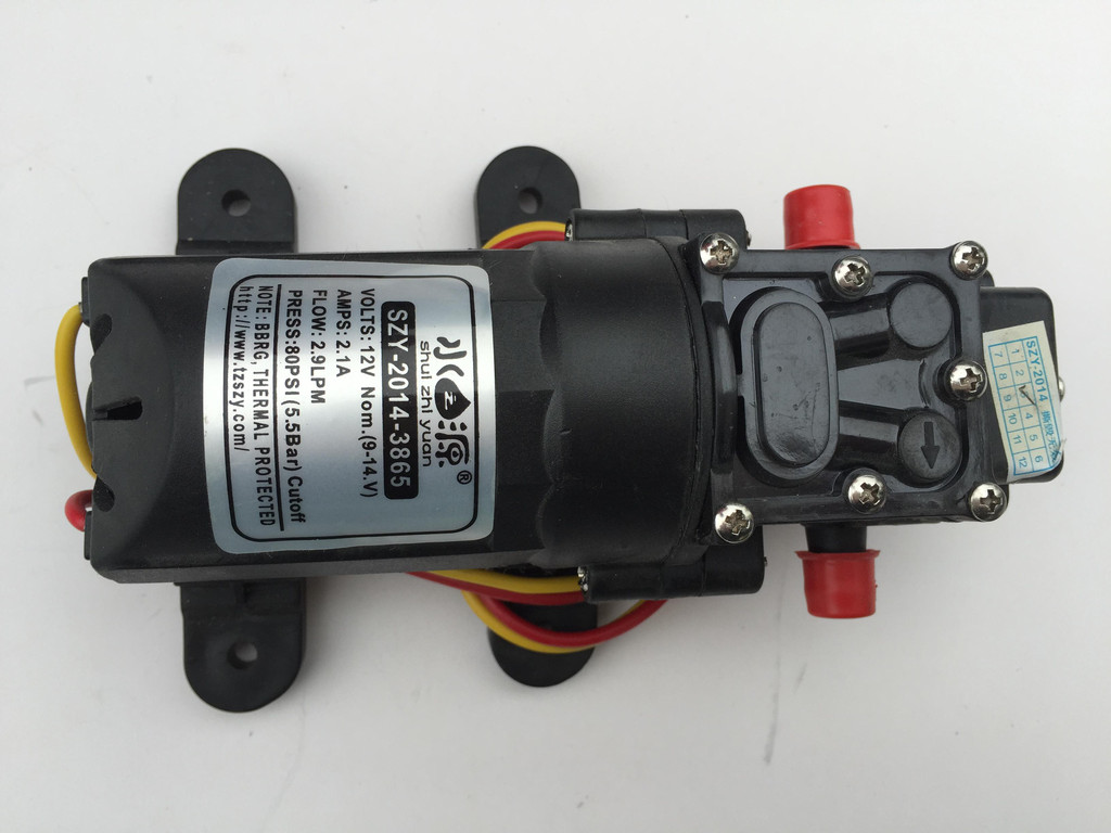 超高压溢压回流隔膜水泵。 压力可以达到7Kg(普通喷雾器的压力只有1-1.5Kg); 耗电量小,只有1.5A左右。主要配套于高压电动喷雾器使用,打开电开关后,打开药液开关,开始工作,关闭药液开关,水泵自动减压回流;再开药液开关,水泵自动开始升压工作,正确使用水泵寿命3年在以上。