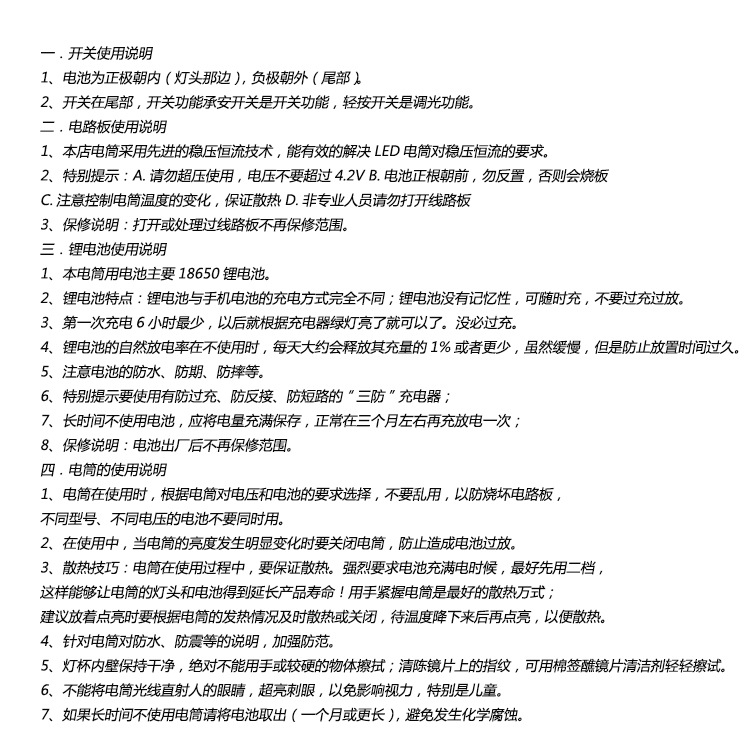 4、采用大容量三元聚合物18650锂电池,可反复充放电500-1000次。