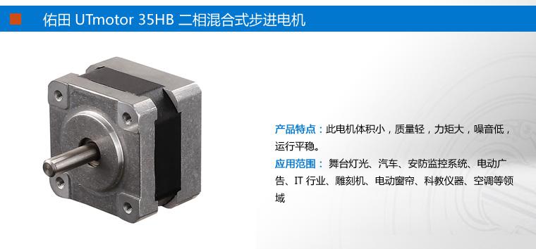 本公司供应步进电机,品牌UTmotor,型号35HB系列。参数为:电压 24V,驱动电压 24/V,电阻 12/Ω,电流 0.4/A,相电流 0.4/A,相电感 9.5/mH。质量保证,欢迎咨询洽谈。