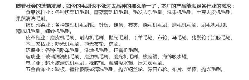 弹簧刷主要用在涂装、钢铁(钢板预处理、钢板镀锌、钢板彩涂)、玻璃清洗等行业,漂染印染行业按材料区分: