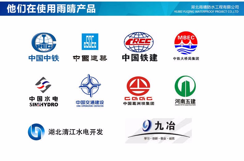湖北雨晴防水工程有限公司始建于1999年,是一家专业从事铁路、公路、桥梁、隧道、建筑防水材料的研发、生产、施工于一体的现代化防水企业。公司荣获了**质量管理体系**、GB/T19001-2000IDT搜90001:2000质量管理体系**、湖北省建筑防水材料专业协会会员资格、安全生产许可证等。公司先后与铁道部第二勘察设计研究院和铁道第四勘察设计研究院等多家建筑设计单位建立了良好的合作关系。产品先后获得湖北省**商标、中国建筑防水行业知名品牌,中国建筑行业产品质量金奖称号。公司具有**二级防水施工资质和特种防渗资质,为湖北省高新技术企业。请通过以下方式联系我们,享受更优惠的价格。销售电话:13477115320
