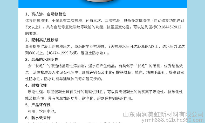 雨润美虹MH-08-Ⅱ 渗透结晶母料 防水 抗渗水泥基渗透结晶型防水材料装饰砂浆