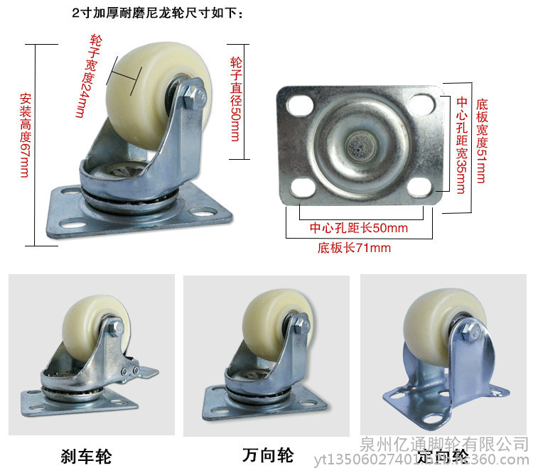 | 尺寸 | 2寸固定,2寸刹车,2.5寸固定,2.5寸万向,2.5寸刹车,3寸固定,3寸万向,3寸刹车,4寸固定,4寸万向,4寸刹车,5寸固定,5寸万向,5寸刹车 |