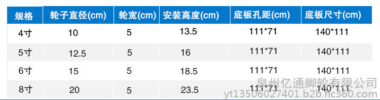 | 尺寸 | 5寸固定,5寸活动,6寸固定,6寸活动,8寸固定,8寸活动 |