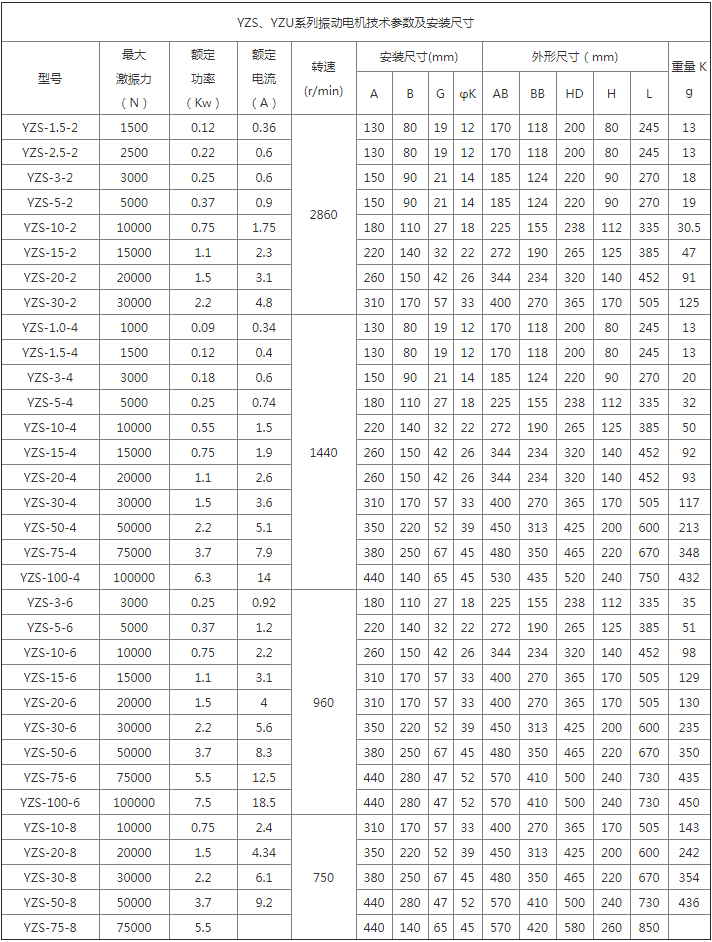 YZS振动电机的激振力利用率高、能耗小、噪音低、寿命长。振动电机的激振力可以无级调节,使用方便,JZO、YZU、YZO、 YZS、YZD、TZDC 等型号的振动电机为通用型振动电机。