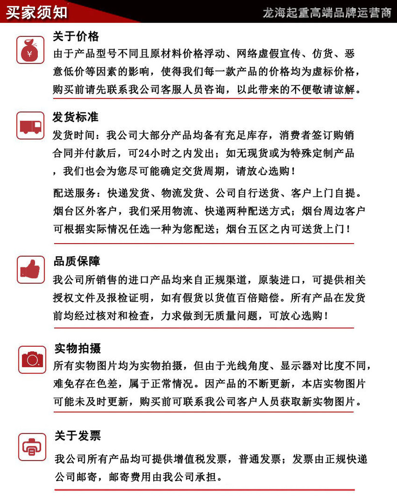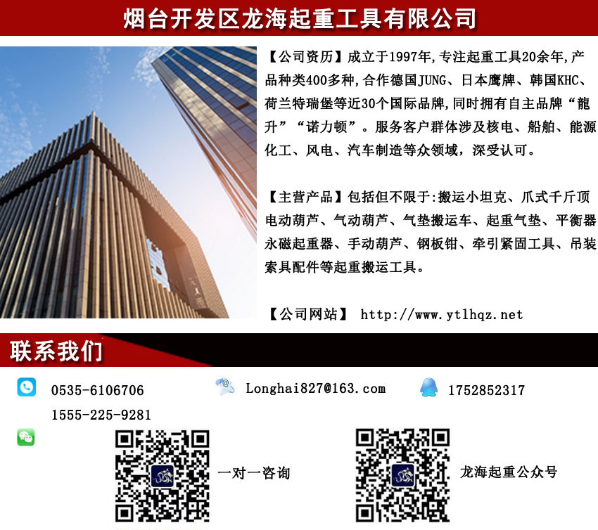 温馨提示:由于不正当竞争,市面上已出现仿品、假货、空允现货后拖延交货、先低价吸引后添加各种费用等陷阱,请广大用户选择时认准龙海起重工具,以免造成不必要的损失!(可预约到我公司查看实物产品以及现场提货等)
